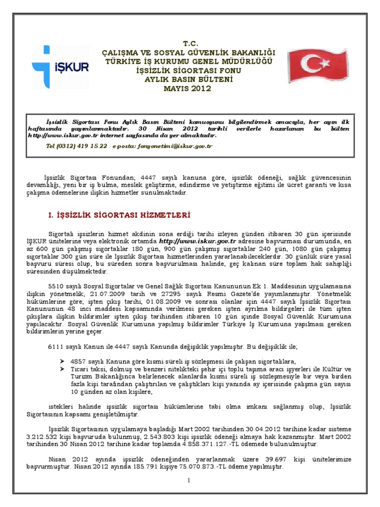 Issizlik Sigortasi Turkiye Is Kurumu Genel Mudurlugu Issizlik Sigortasi Dairesi Baskanligi Pdf Ucretsiz Indirin